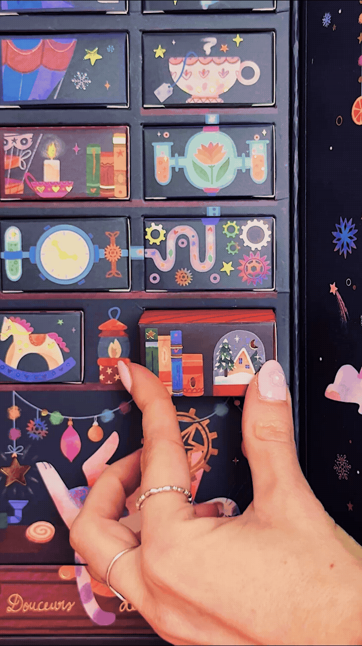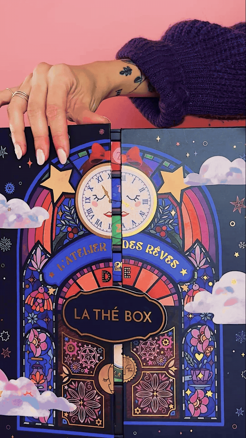 Pour La thé box, j’ai imaginé une direction artistique complète autour d’un univers poétique et onirique inspiré par la magie de décembre. Le projet réunit un calendrier de l’Avent, une box mensuelle, un livret et une étiquette de thé en vrac, autant de variations d’un même rêve autour du thé et de la douceur de noël.